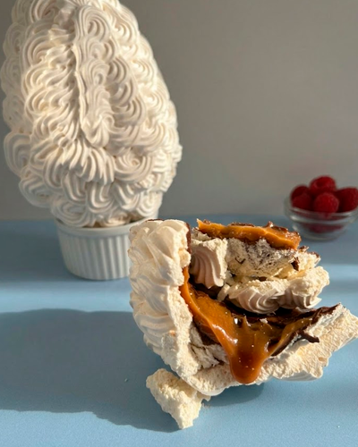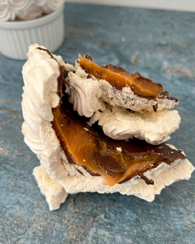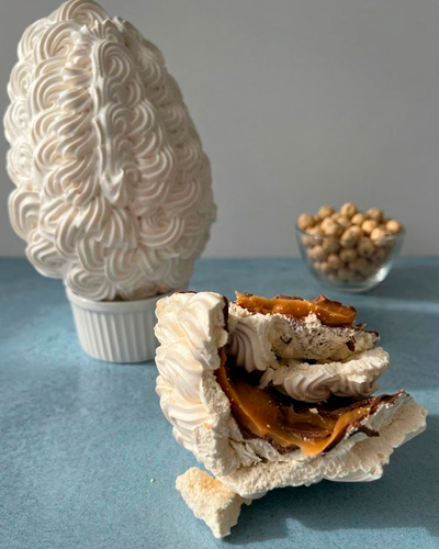 • Ovo de suspiro com sabor de banana com caramelo salgado;